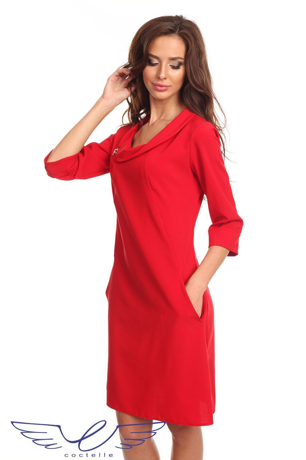 Модерное платье свободного кроя с шикарным воротником и рукавом три четверти, дополнено карманами. Застежка на пуговицу сзади на воротнике. Платье подчеркивает чувство тонкого вкуса его обладательницы! Важно: Декоративная брошь использована для фотосессии. В стоимость платья не входит.